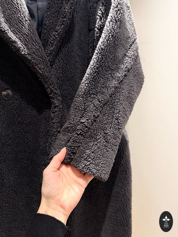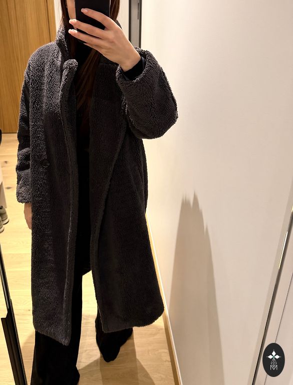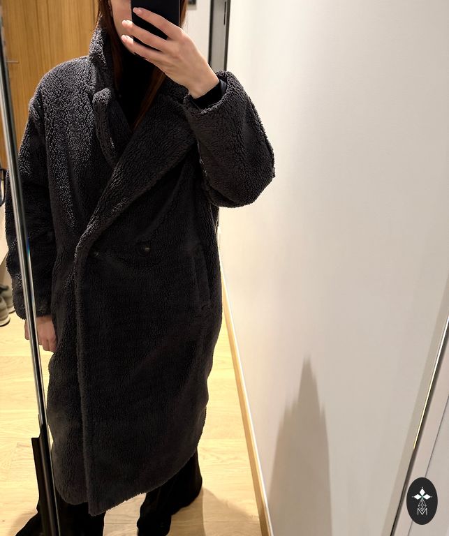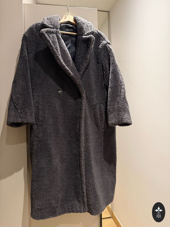 Coat for autumn with wool in the composition. I would say it's suitable for warmer autumn/spring or cooler summer days. Worn twice and washed once in a gentle cycle. Condition is like new, and it comes with a belt. It has pockets both on the chest and sides. Composition: 90% polyester, 10% wool