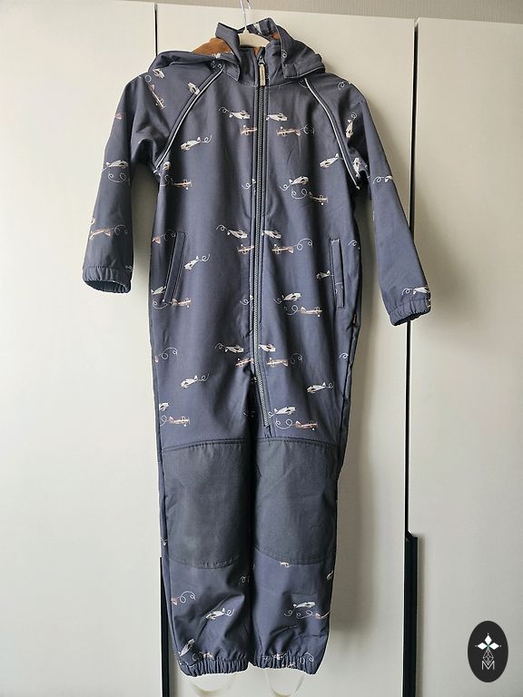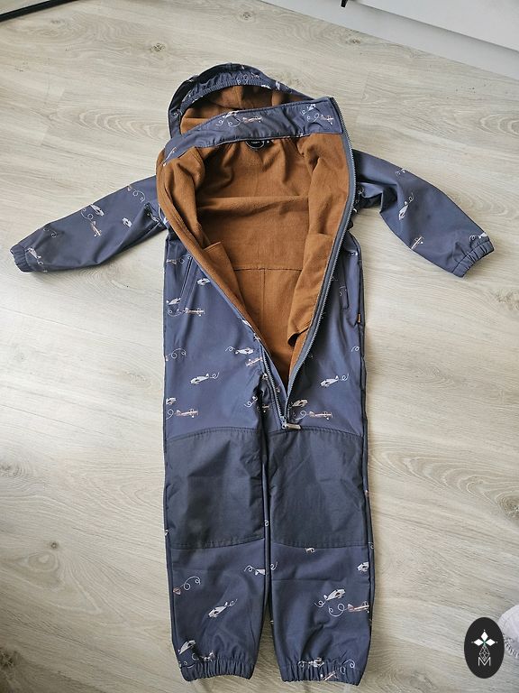 98 suuruses kombinesoon, kuid sobib ka järgmisele suurusele. Seestpoolt fliisjas.