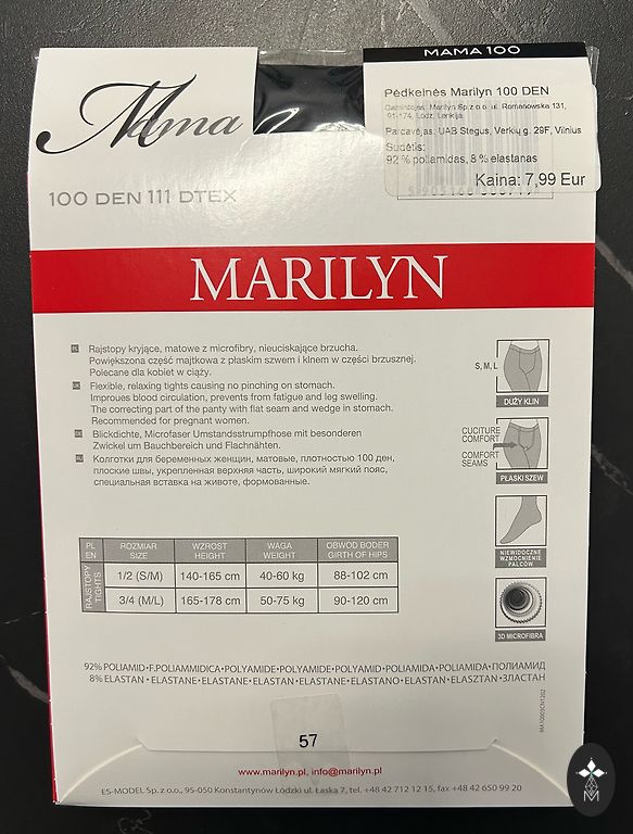Quality compression socks for pregnant women. Everything can be seen on the box, and you can take your measurements to understand if they will fit. I have tried on the socks, purchased new for €34.