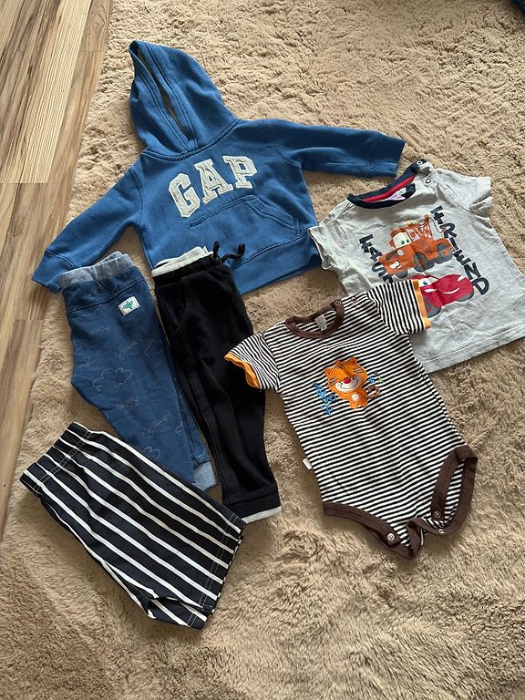 Yra ir 80, ir 86 dydžio drabužiai. Avalynė 23 ir 24 dydžio.
