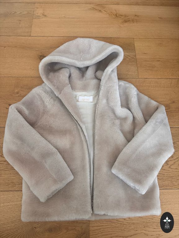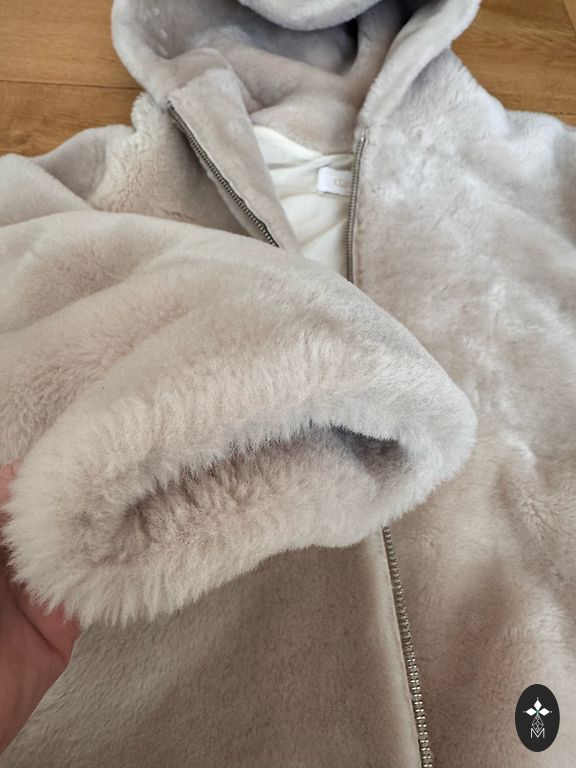 Pusgaras piedurknes, ar cimdiņiem izskatas eleganti,apkaklīti var piepogāt klā un nopogāt nost- apaļš izgriezums vai ar augsto krādziņu. Oderīte jūras zili zaļa