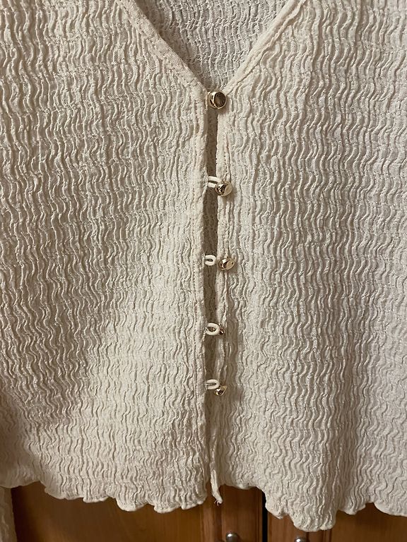 Valge, kerge heegeldatud stiilis ZARA pikkade varrukatega kampsun, nööriga kaeluse juures ja soonikkoes alläärega. Naiselik, boho stiilis rõivas – sobib hästi suveks või soojaks sügiseks. Hind on läbiräägitav, saatmine ei sisaldu hinnas.