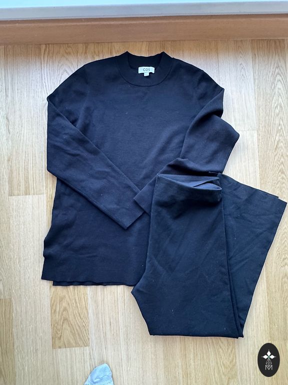 Sweater - chest 55cm (without stretching), length 67cm, Pants - total length 108cm, inseam 76cm, waist with elastic without stretching 40cm. Skirt "Topshop" size L, waist with elastic, length 103cm.
