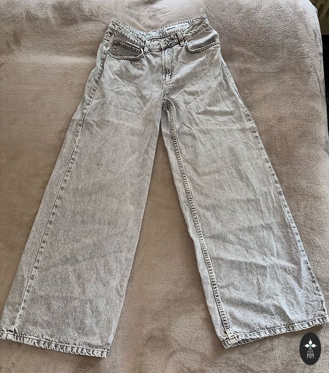 Серые широкие джинсы