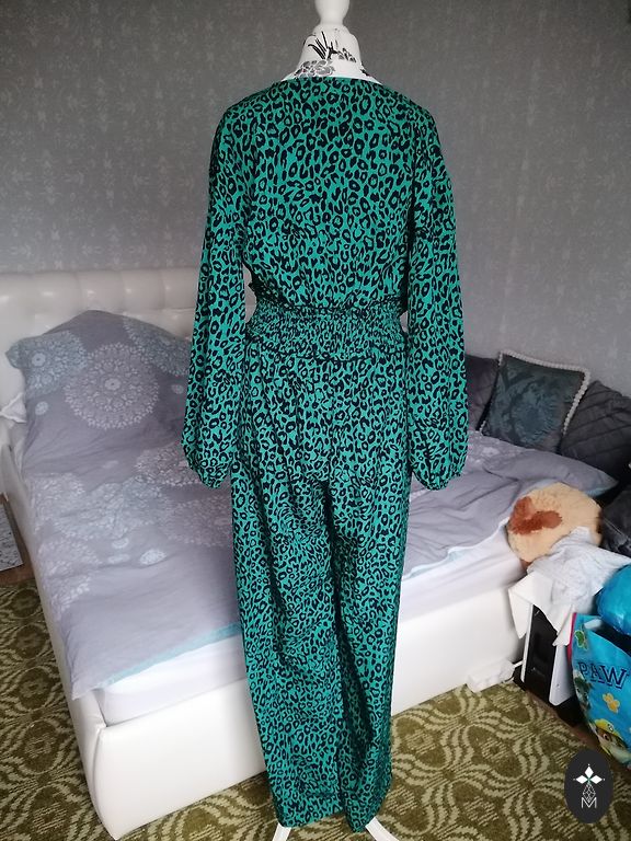 S-M dydžio, juosmuo iš nugaros pusės ant gumos be ištempimo 66 cm, klubai 102 cm ir ilgis 95 cm, medžiaga velvetas.