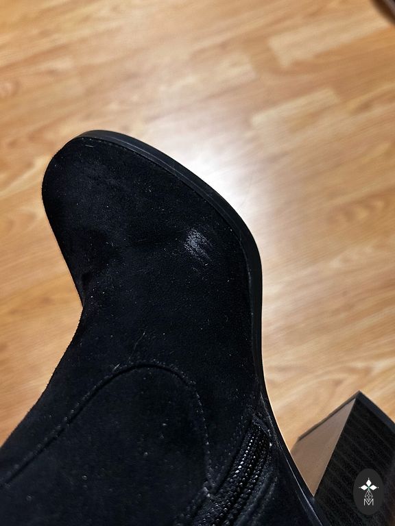 Kvaliteets seemisnahast saapad. Hiljuti tehtud profülaktika. Kinnitusi ei ole, kuid taga on tõmblukk, mis võimaldab mugavalt kanda nii kitsama kui ka laiema jalaga.