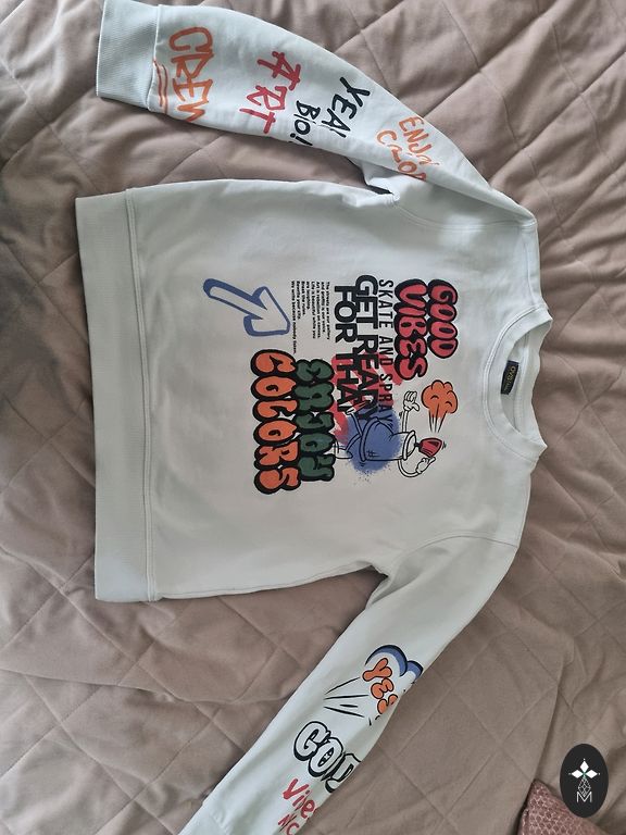 Джемпер Balmain размера Xs. Носил подросток на рост 158-165 в среднем. Хлопок, приобретён в Dubai Outlet как оригинал.