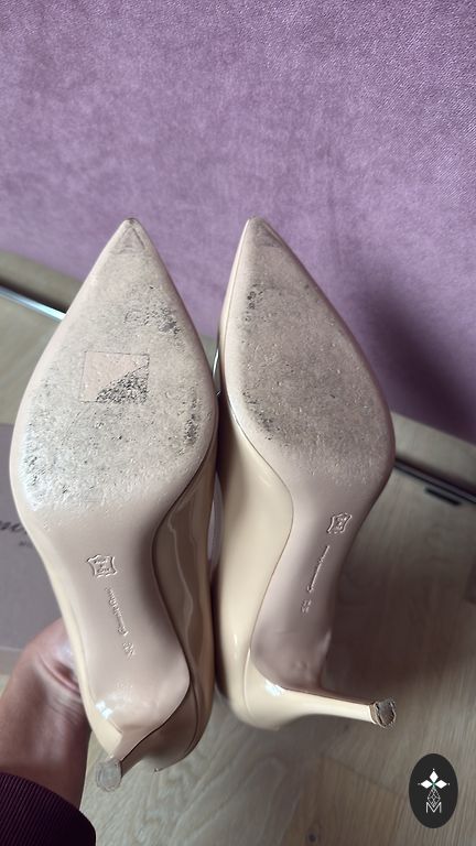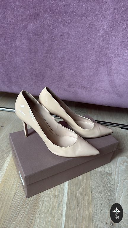 Christian Dior J’Adior Slingback shoes made of patent leather. Leather inside and patent leather outside. Very comfortable last. Heel height is 9cm. Worn at several events.