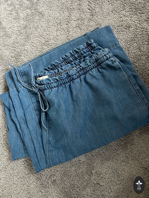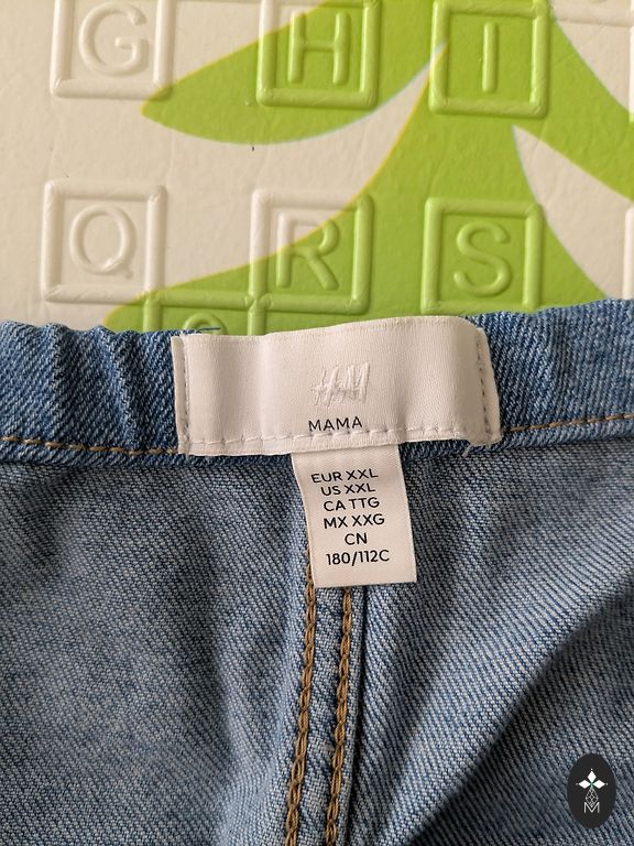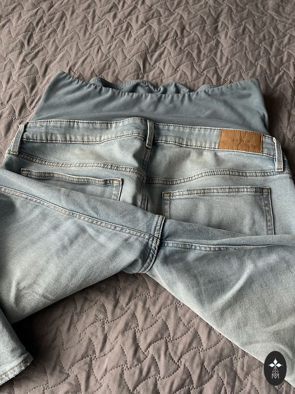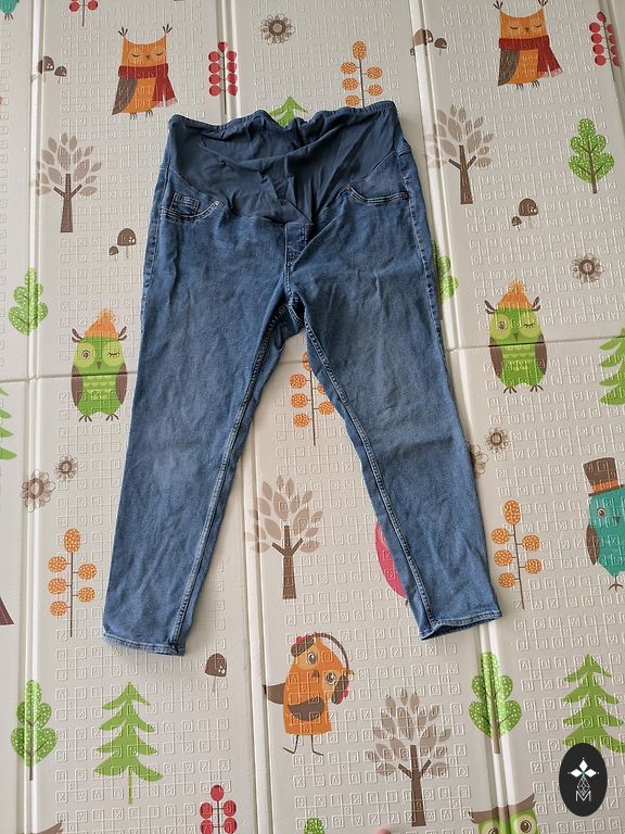 Maternity pants size 46. Very comfortable fit around the belly with the fabric part that is around the tummy.