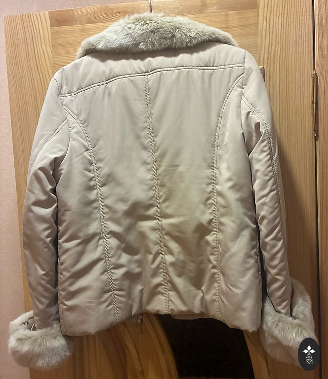 Short sheepskin coat. Shoulder width 40 cm, chest circumference 53 cm, sleeve length 52 cm, coat length 57 cm. Color as in the photo.