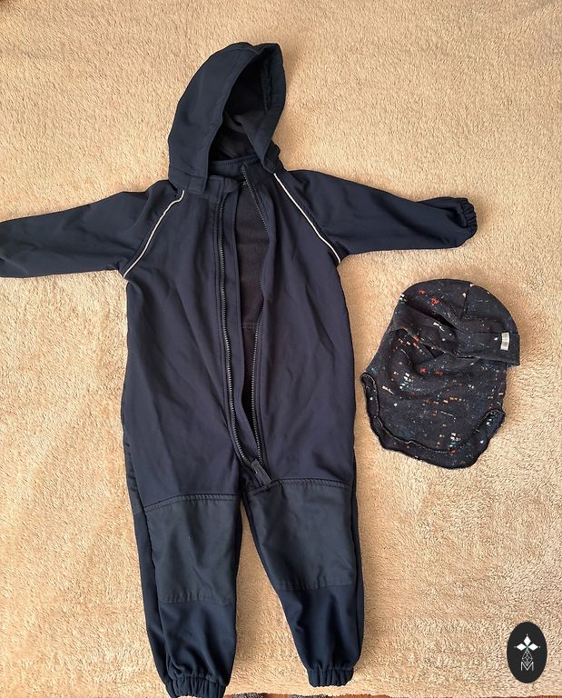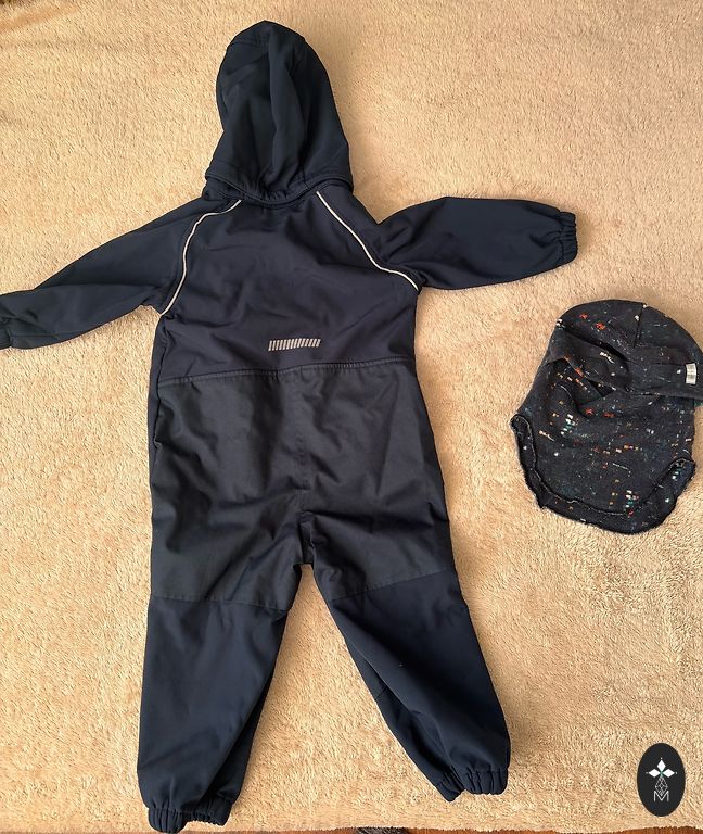 Labai patogus ir praktiškas kombinezonas, be jokių nusidėvėjimo požymių, tik trys nusidėvėjimo taškeliai ant kelnių (matomi nuotraukoje), guma kaip nauja, naudota vieną kartą. Buvo pirktas naujas, po vieno vaiko.