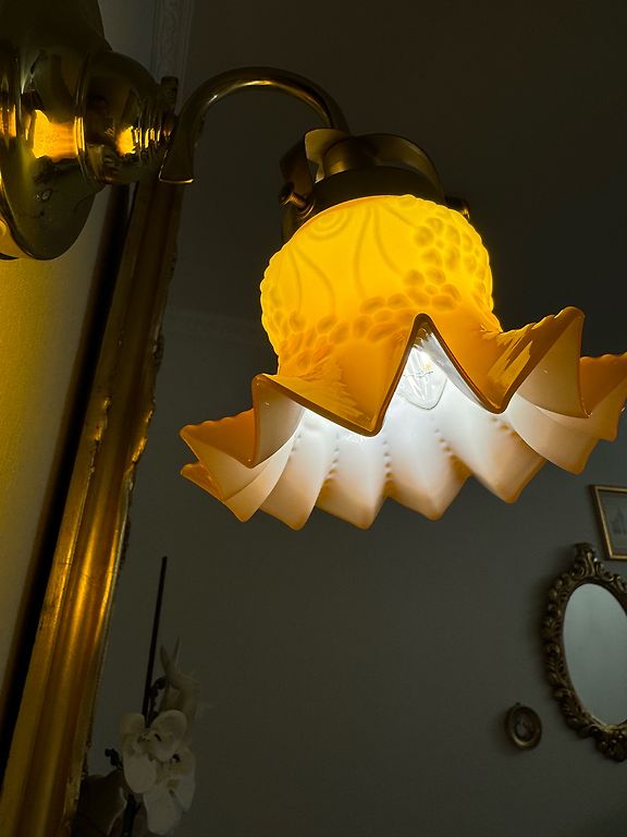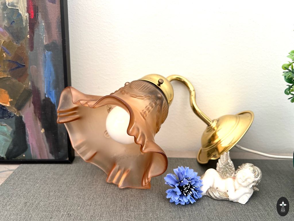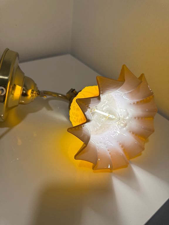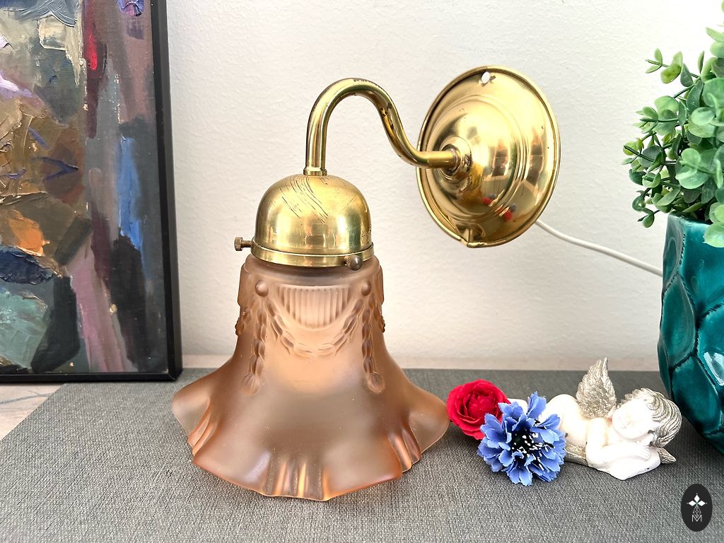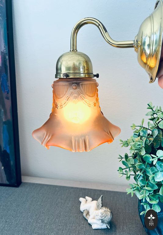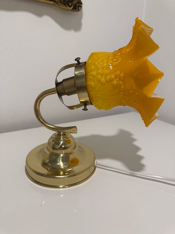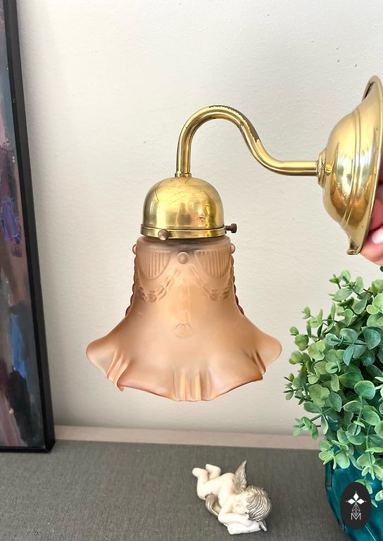 Vintage sienas lampa. Zeltīts misiņš, stikls. Bez defektiem. Slēdzis uz vada. Augstums 30cm., no sienas 25cm.
