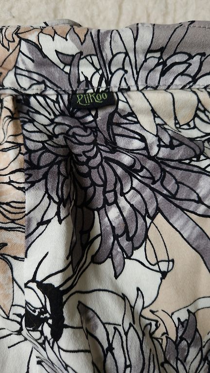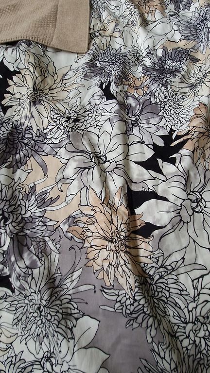 Light beige straight midi skirt with lining. Material composition is not indicated. Zipper and slit at the back. There is a lining, but the seam is slightly undone at the back, which can be easily sewn. Size indicated is 54. Waist - 53 cm x2 Hips - 60 cm x2 Length - 62 cm The second image shows the fabric close-up.