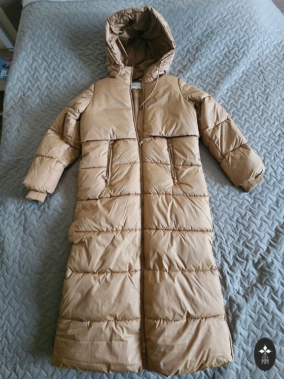 Coat One size. Fits sizes S-L. Bust circumference 100 cm, hip circumference 110 cm, length 125 cm. Sleeve 62 cm. Fits well for my size S. Worn once. Made in Italy. This season's collection. 100% polyester.