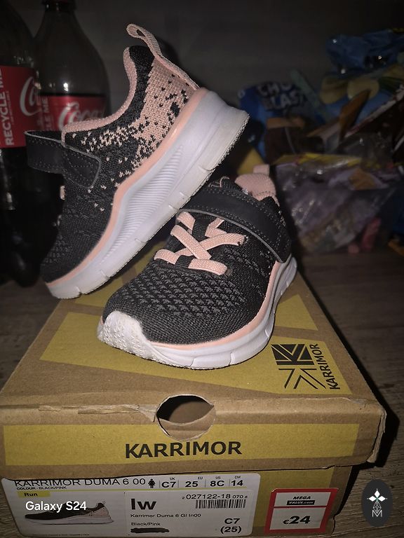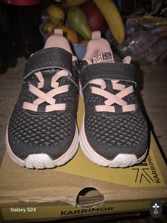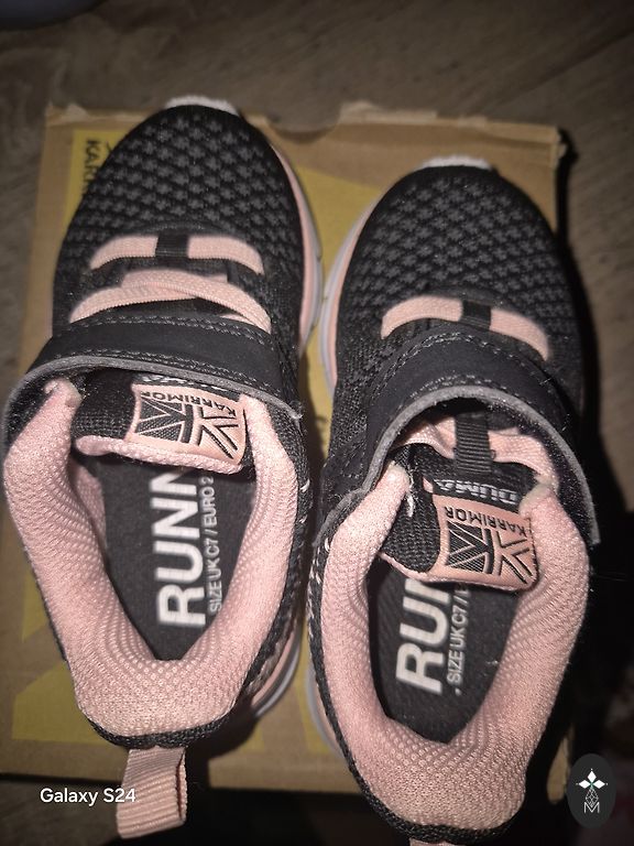 derinys — balta, rožinė, tamsiai mėlyna ir geltona — suteikia lengvą, sportišką išvaizdą. Praktiniai batai mokyklai, sporto užsiėmimams ar kasdienai.