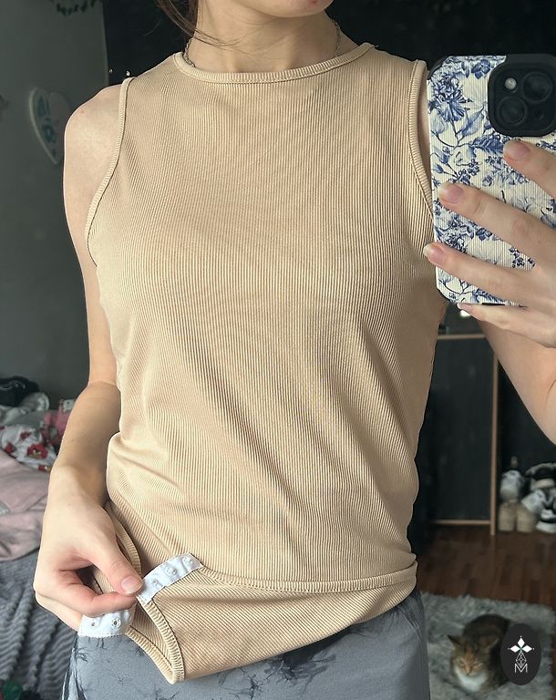 Padding in the chest area. Soft beige color.