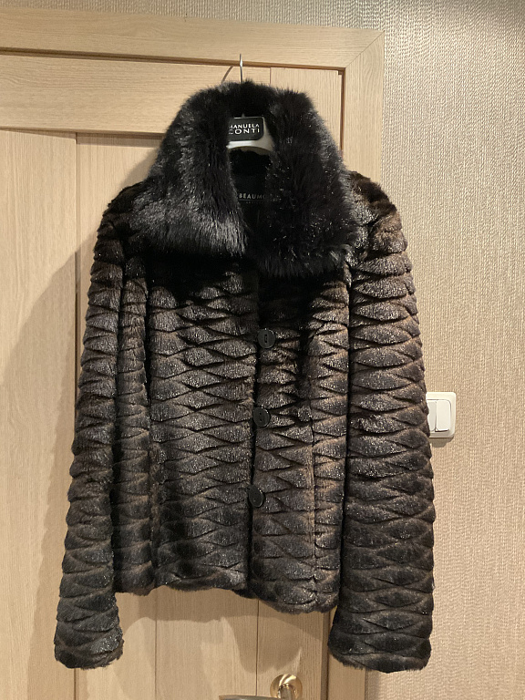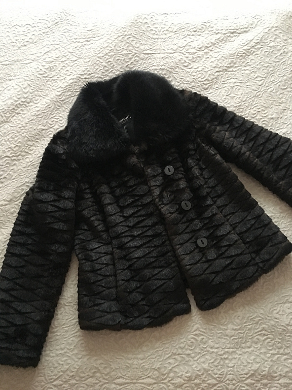 A coat made of faux fur (like sheepskin) with a Japanese-style collar. It looks very good and unique. It has a belt and pockets. Bought on Vestiaire Collective for €140.
