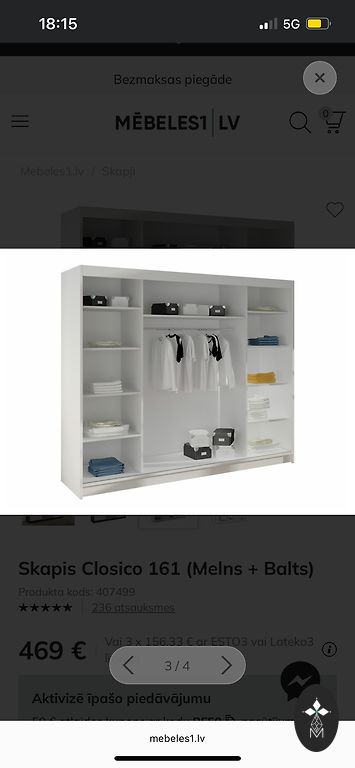 A year-used wardrobe, no defects, currently disassembled, hence pictures from the internet. At Jysk, it is now 279 euros. Dimensions 151 x 200 x 59.