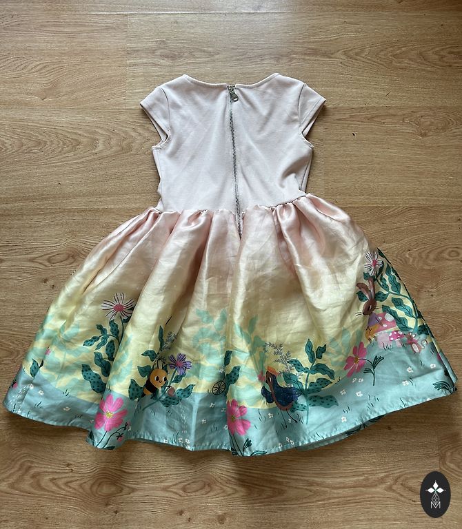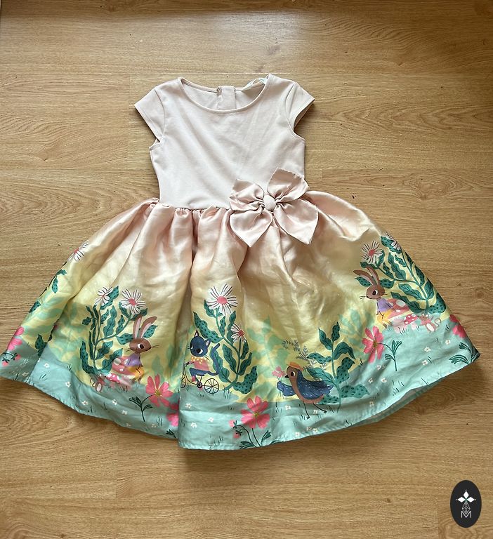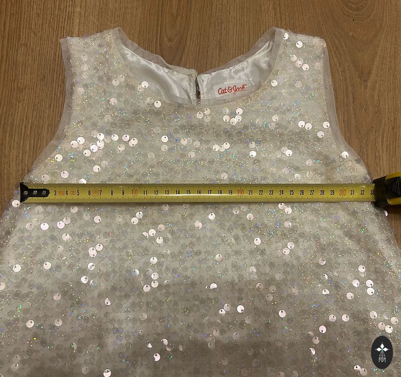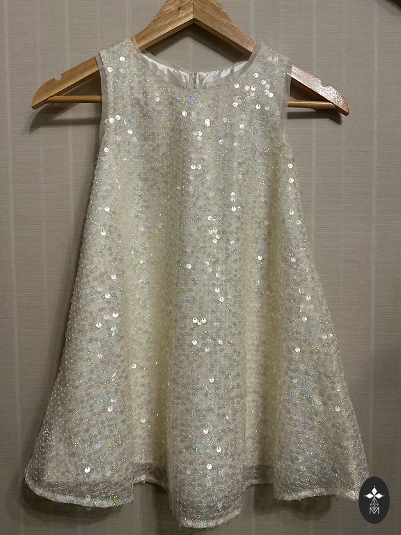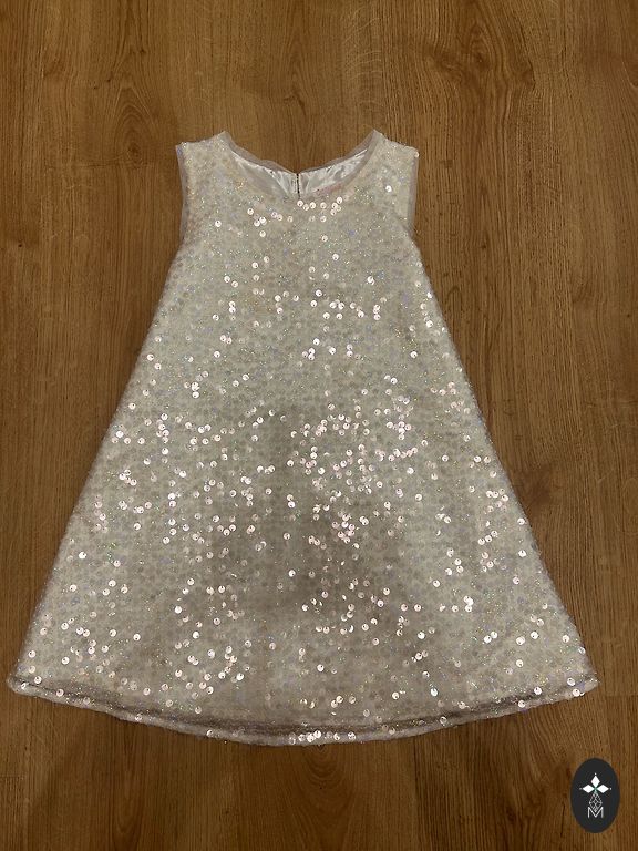 The sizes indicated on the tags are different, but as seen in the photos, the dresses are the same by measurements. I would say they correspond to size 116-122.