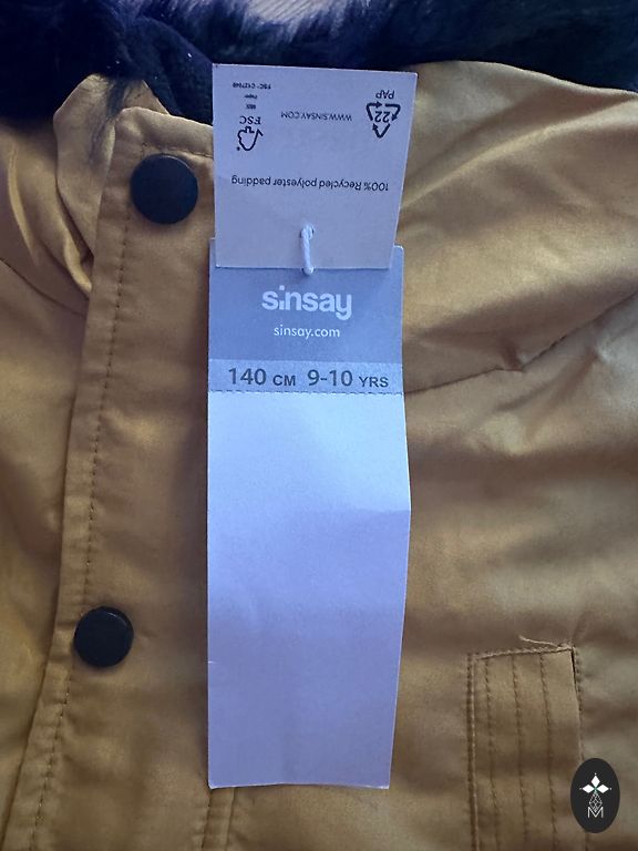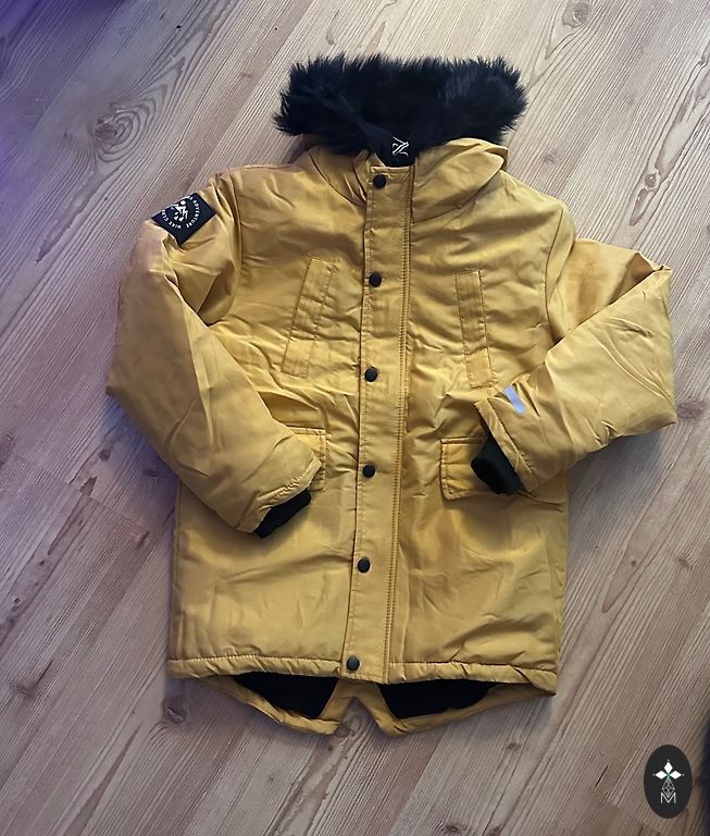 Куртка выстирана, но на фото видны дефекты, которые не отстирываются. Размер на 9 лет, или 134, подойдет также немного большему ребенку.