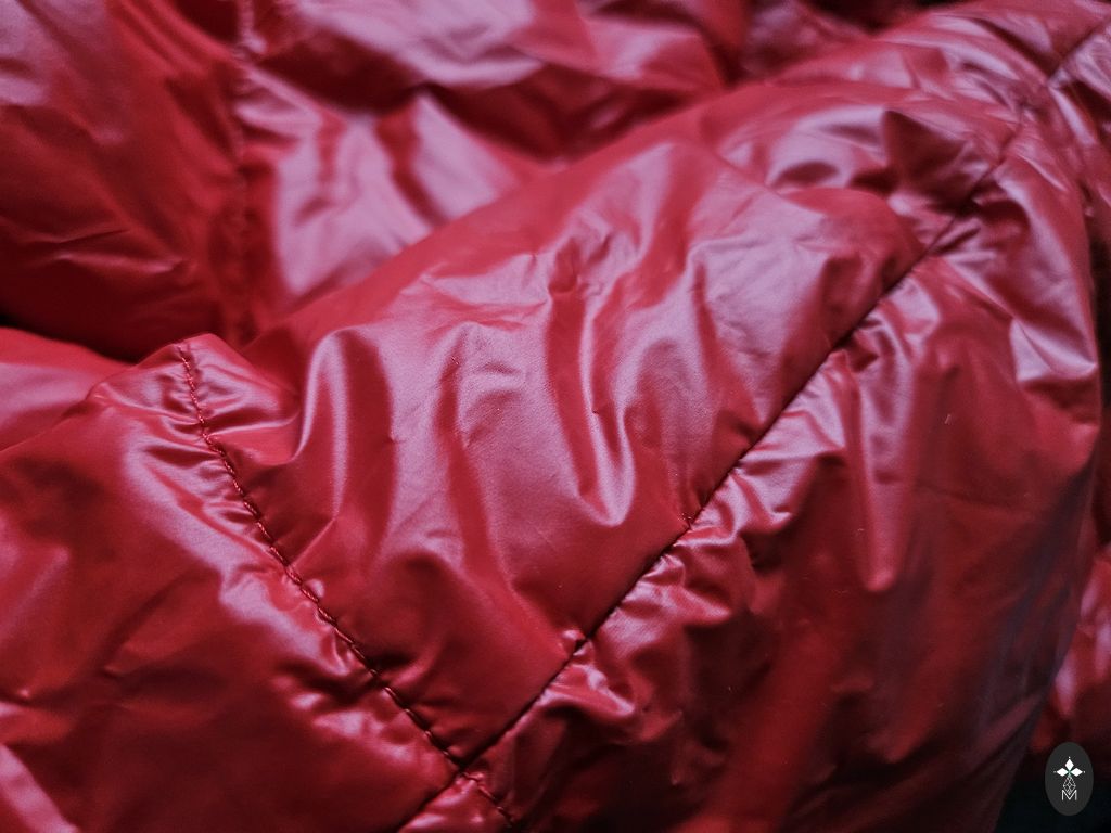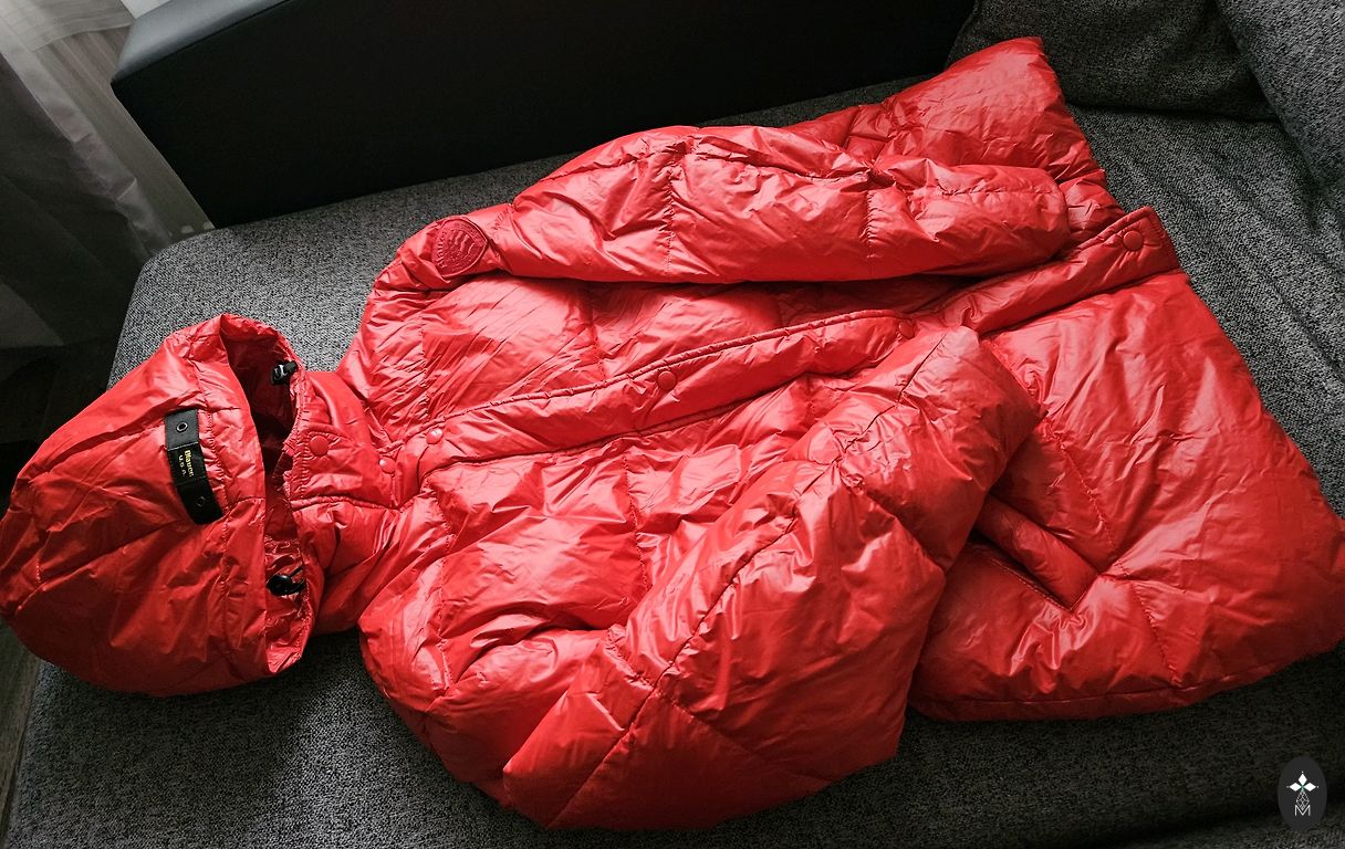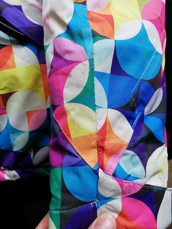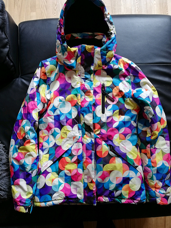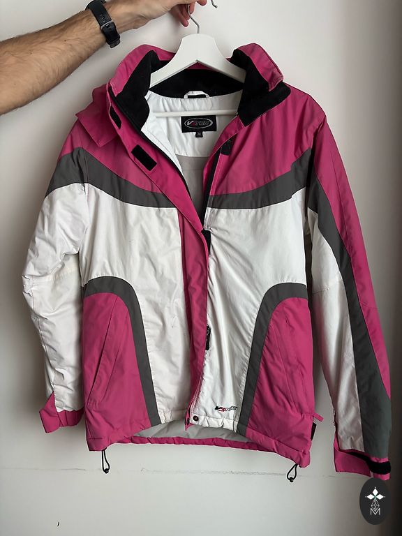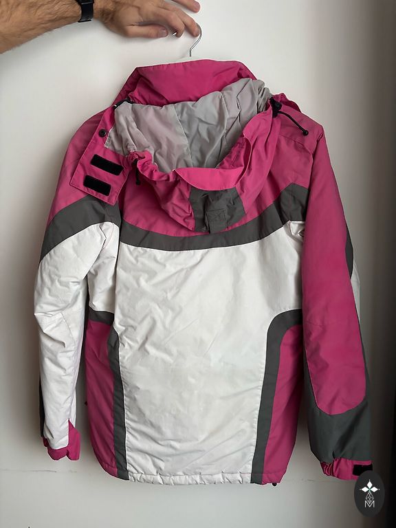 A very warm, lightly padded winter jacket for going to the mountain. It has many compartments and pockets both inside the jacket and outside on the arms. There is a thumb fabric for extending the sleeves and additional fastening from the inside to provide extra warmth to the lower abdomen.