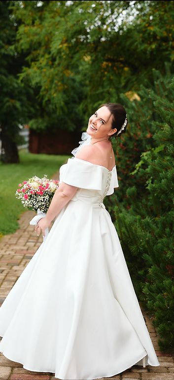 Pārdodu kāzu kleitu, šūtu pēc pasūtījuma, vilktu tikai fotosesijā. Kāzās nebija! Var apgriezt un izveidot skaistu vasaras kleitu, piemērotu grūtniecēm. Kleita ir grieķu stilā. Ļoti gara. Modelis 178, kleita ir garāka, tāpēc derēs arī ļoti garām meitenēm un grūtniecēm. Kleita ir no ļoti laba materiāla. Uz izmēru M/L. Apakšā nedaudz saburzīta, jo karājas apvalkā. Ļoti patīkama, viegla uz tausti, neierobežo kustības. Rāvējslēdzējs sānos.