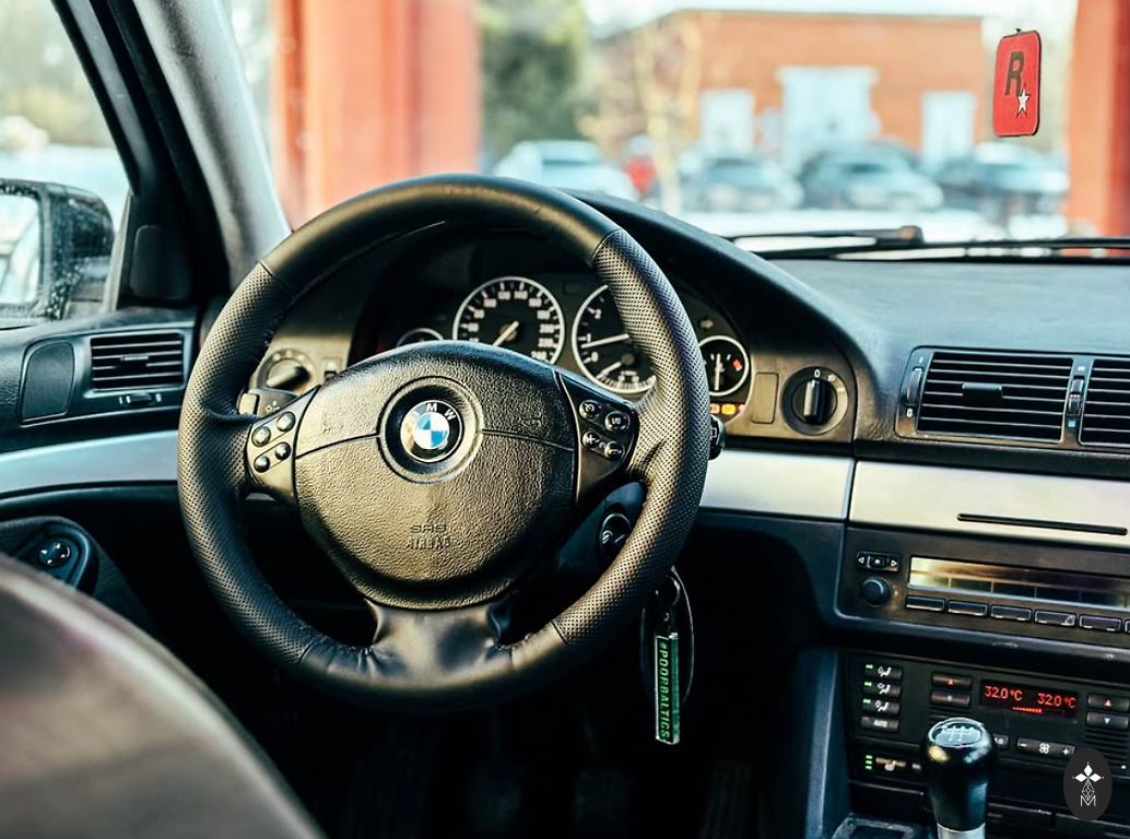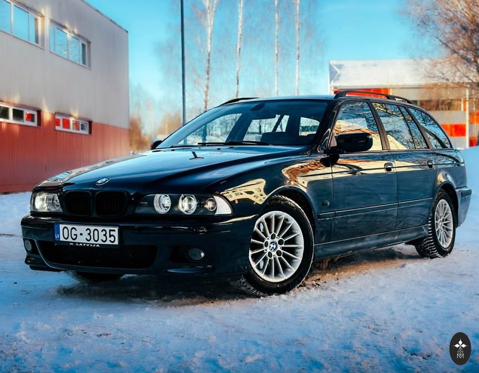 BMW 523i 130 kW, средний расход бензина около 9.3л/100км. Технический осмотр в январе 2027 года. Автомобиль второй год в Латвии, привезен из Германии, без ржавчины. Автомобиль с множеством дополнительных опций: большой экран, подогрев сидений, рабочий CCC, электрически регулируемые сиденья, M-руль,