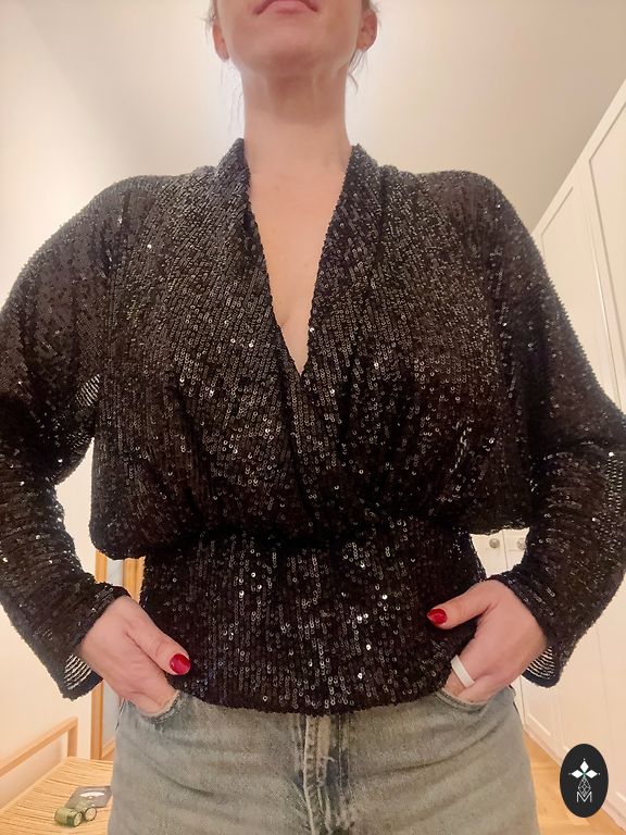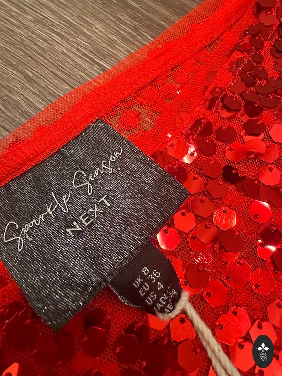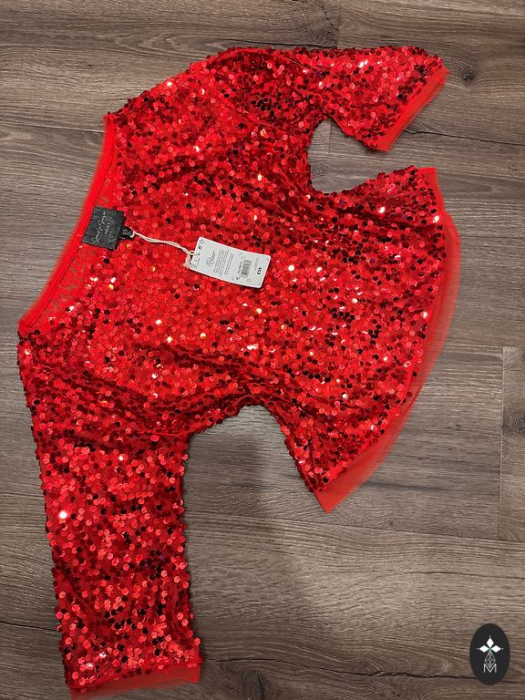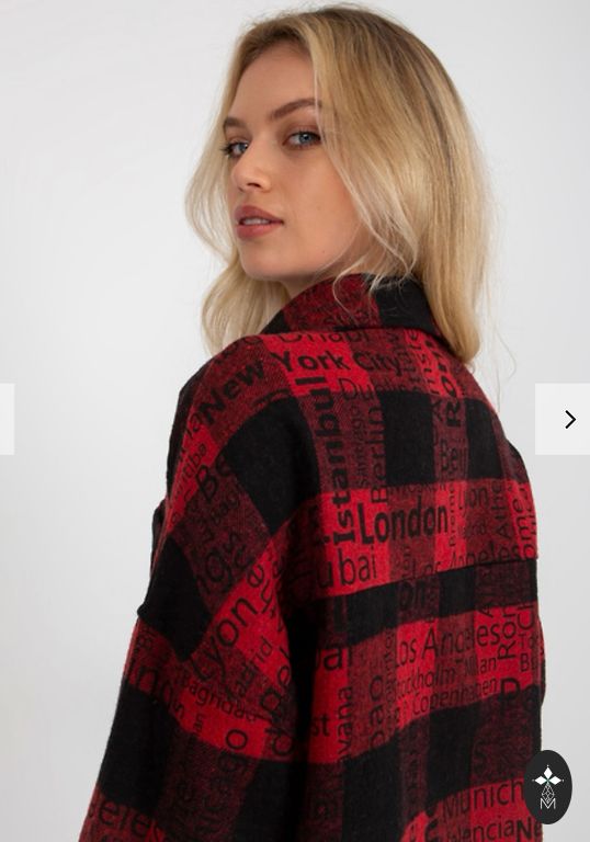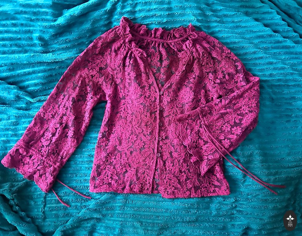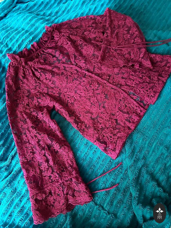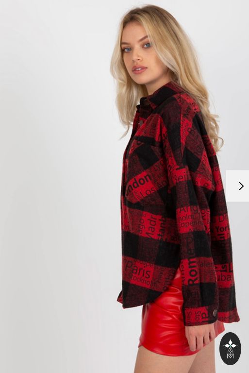 Ярко-красная блузка.