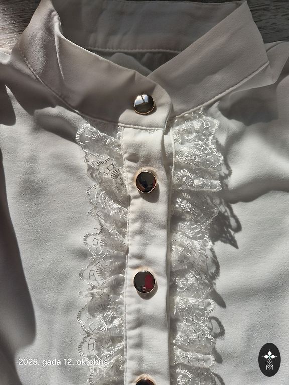 С декоративным элементом в области воротника - двойной воротник. Легкий материал, красивый узор.