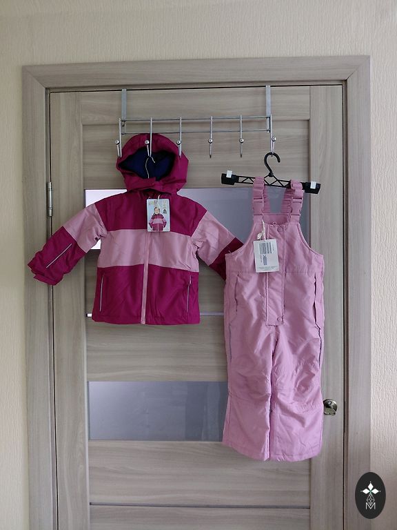 3T dydis - 92/98cm Labai patogus ir šiltas žiemos kombinezono komplektas. Iš trūkumų: Kairės kojos apačia šiek tiek nudilusi Striukės prie užtrauktuko ir kišenės minimaliai tamsesnė. Iš esmės nepastebima