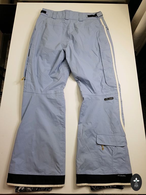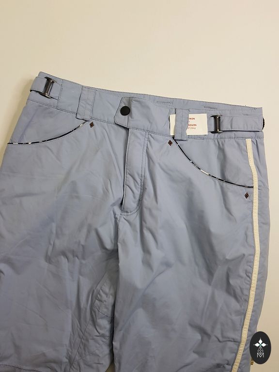 Очень красивый цвет - ментоловый. Отличное состояние (небольшой дефект - на нижней части брючины небольшой царапина, не более 1 см, практически незаметная). Очень легкие, карманы на молнии.