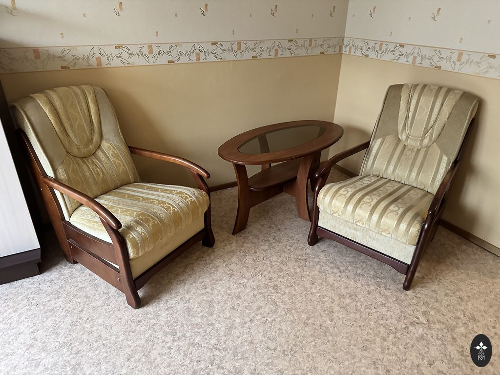 Очень удобный и мягкий, с качественной обивкой и декоративным рисунком. У дивана красивые резные деревянные элементы с позолоченной отделкой.