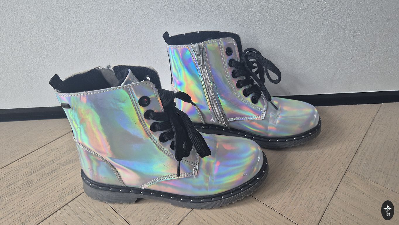Зимние сапоги для девочки, размер 34, стелька 21 см. Цвет немного поблек, как обычно бывает с обувью ECCO. В остальном в нормальном состоянии. GORE-TEX.