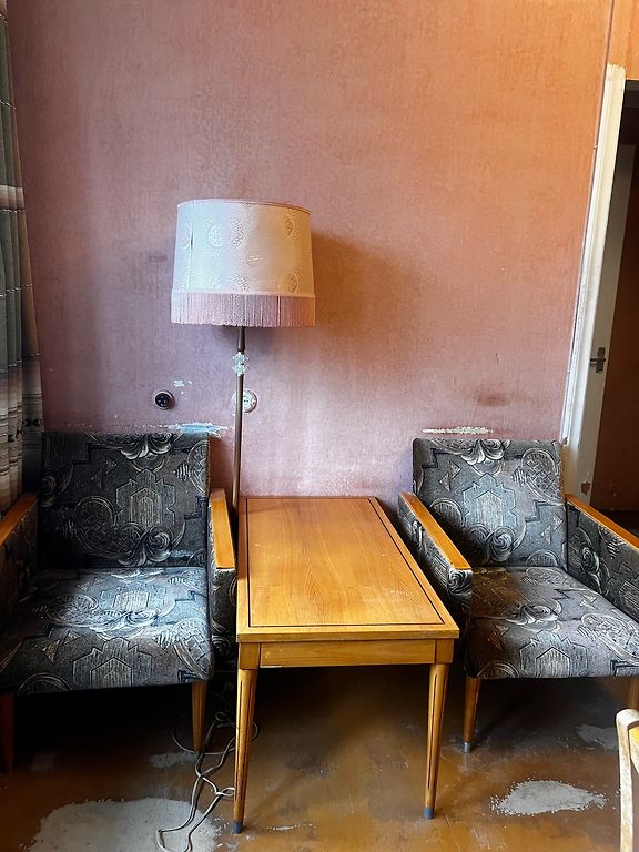 ⚠️ Cons: fabric has minor wear damage (visible in photo), can be reupholstered if needed.