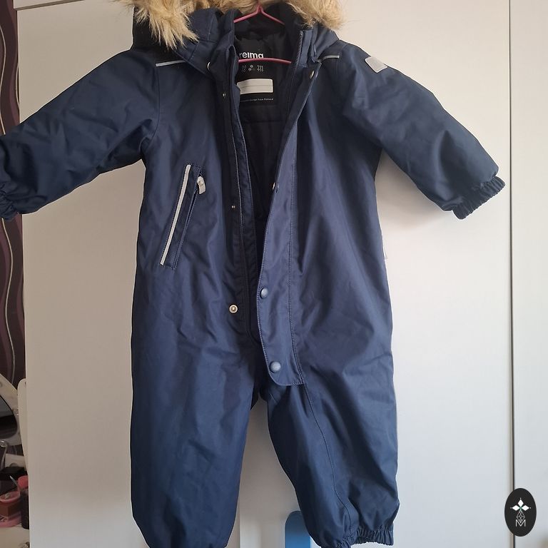 Ziemas kombinezons Hummel, izmērs 80, kapuces kažoks ir noņemams, uz piedurknēm un kājām ir minimāli nodilumi.
