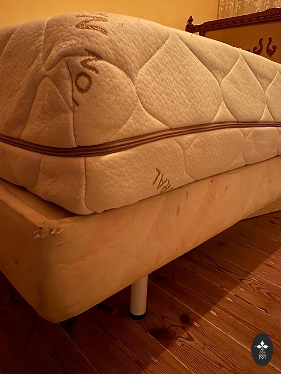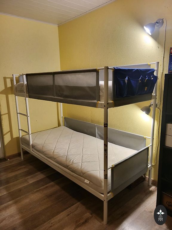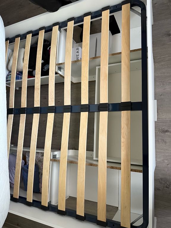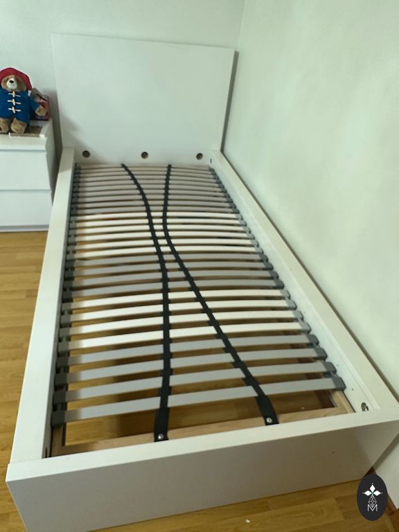 pārdodu stabilu baltu koka gultu matracim 190x90. stāvoklis ir labs, vienīgais trūkums - dažas flomasteru švīkas no bērniem.