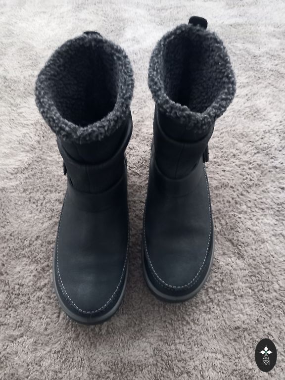 Derēs uz 34/35 izmēru, šaurai kājai. Mākslīgais siltinājums. Uz purngaliem neliela balta līnija no sāls, bet nekādu citu defektu nav.
