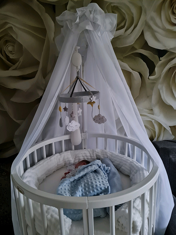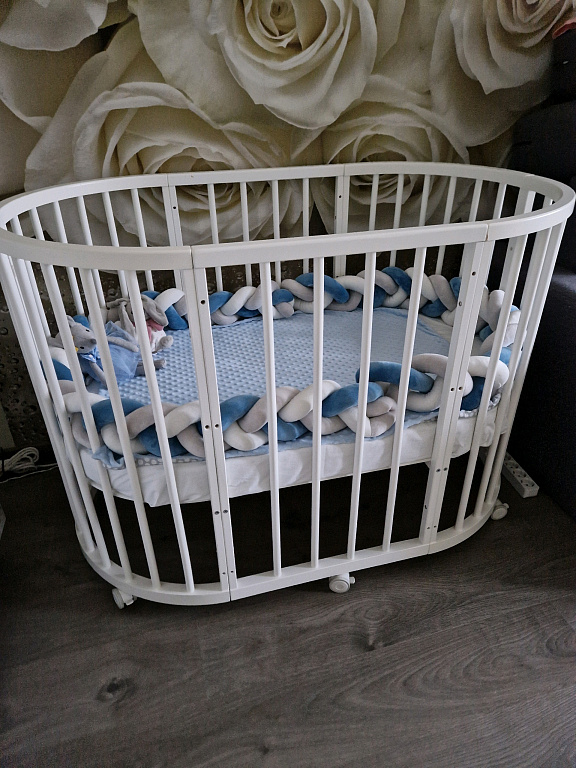 Voodi on valmistatud männist ja kaetud looduslike mittetoksiliste materjalidega. Madratsi pinda saab kinnitada ühele kolmest kõrguse positsioonist.