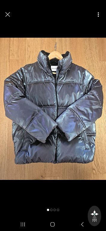 Kerge, tepitud jope tumesinises värvitoonis.
