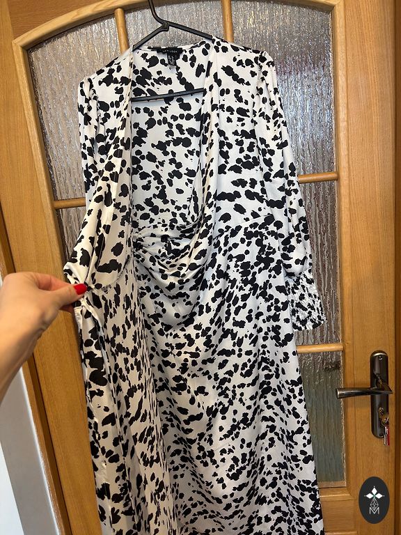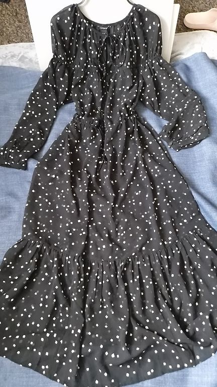 Kaip nauja, apsivilkta vieną kartą. Ilgis 124 cm. Laisvo kirpimo, reglaninės rankovės, tikrai tiks ir M dydžiui.