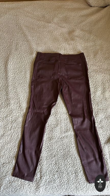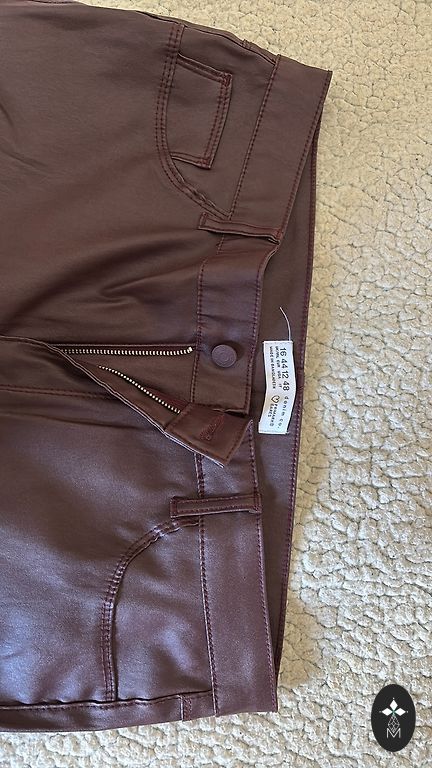 Roosa Marella püksid, mille puudust märgin, et ühel säärel on veidi kulunud serv, mida saab ise parandada. Pükste pikkus - 94 cm, vöökoht - 38, puusad - 48.