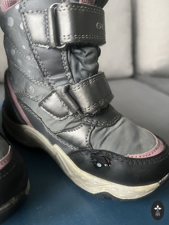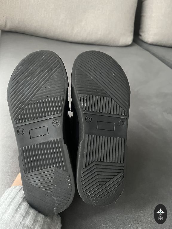 следы носки, особенно на внутренней нижней части штанов (отобразила на последнем фото)