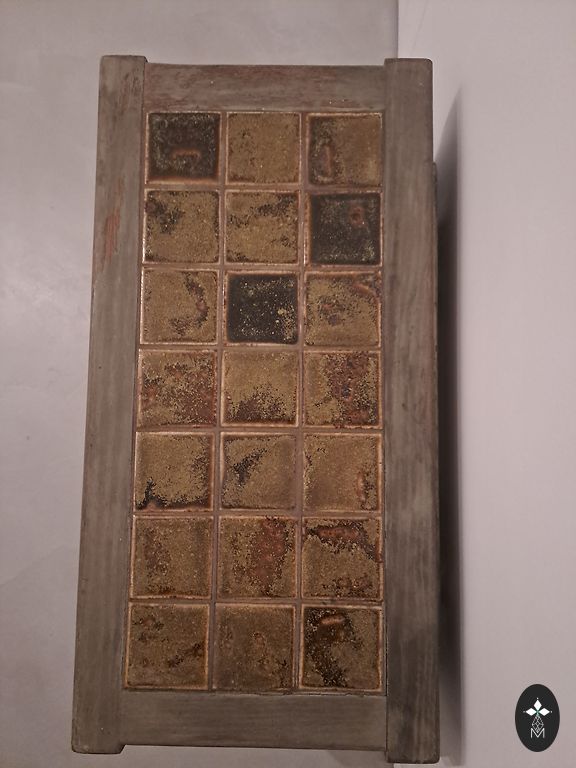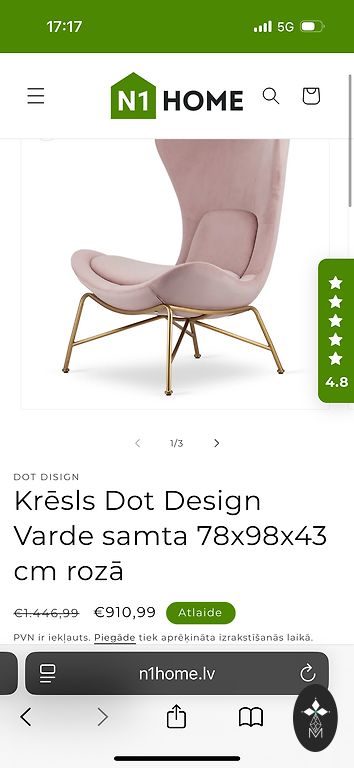 Khaki/oliivroheline sametkangaga kaetud iste. Suurepärases seisukorras. Kõrgus 40 cm, laius 40x40 cm.