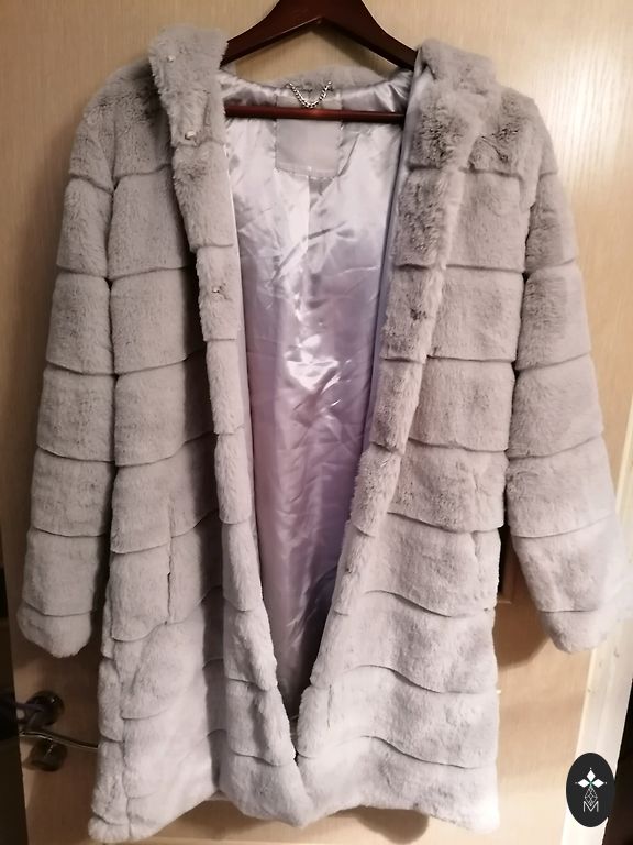 Ilus, pehme, stiilne mantel. On 2 taskut. Pikkus ~62