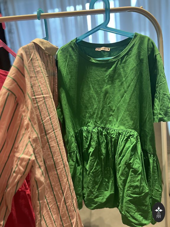 Zara megzta suknelė, uždėta vieną kartą. Ji yra labai šilta ir patogi, įsigyta praėjusį rudenį ir taip pat stovėjo spintoje. Pažymėtas M dydis, tačiau man, L dydžio nešiotojai, yra oversize.