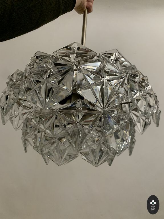 Hromēts korpuss un kupoli no bieza, fakturēta stikla rada ļoti siltu un patīkamu apgaismojumu. Lampa izskatās eleganti gan modernā, gan klasiskā interjerā.
