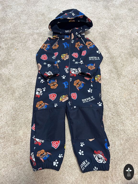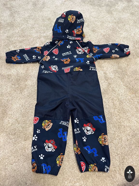 The jumpsuit is thin, waterproof, with insulation in the shoulder area. The legs can be extended, growing with the child.