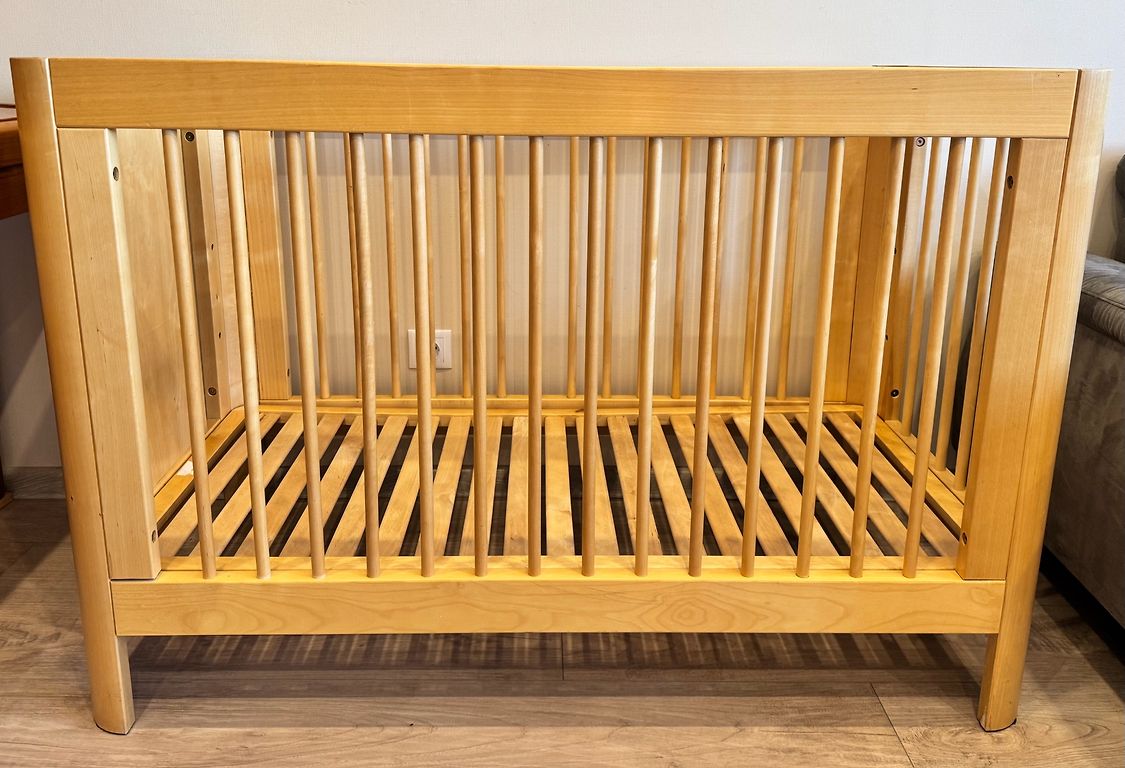 Продаю детскую кроватку. Изготовлена из натуральных материалов. Матрас 100×55 см, внешние размеры кроватки: длина 105 см, ширина 88 см, высота 72 см. Кроватка не использовалась, так как изменился стиль детской комнаты.