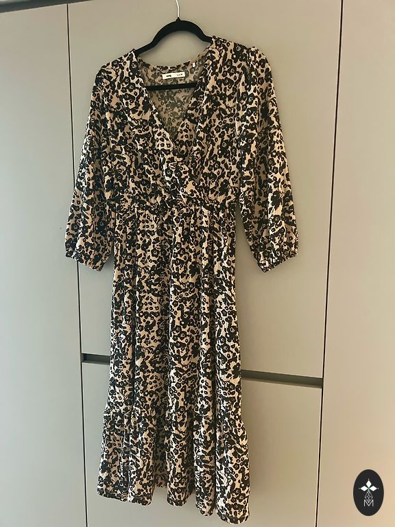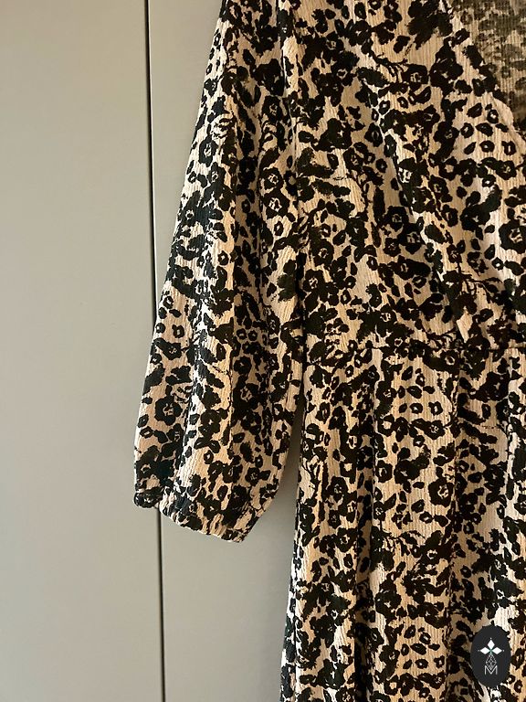 Женственное платье с рукавами до локтя и оборкой по нижнему краю из эластичной ткани. Платье подходит как для повседневной носки, так и для праздников. Объем груди без растяжки 96, длина 101.
