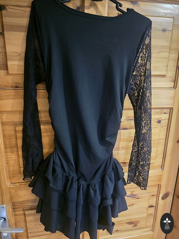 In excellent condition, the only defect is a tear inside the lining, but of course, it is not visible from the outside. Thick, firm fabric, does not stretch. With lining. The tag says 38/M, but it doesn't match, more towards S. See measurements: length 96cm, armpits 42cm, waist 35cm, hips 47cm. Zipper at the back, fabric texture - small tufts. Shipping is not included in the price.